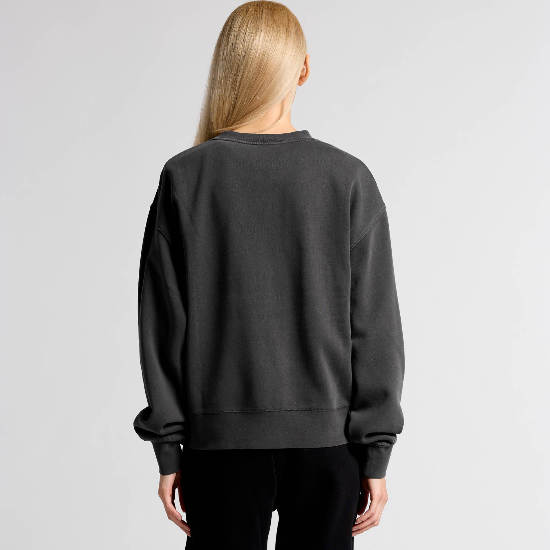 Pullover crew, drop shoulder, crew neck, garment dyed, sleeve cuff ribbing